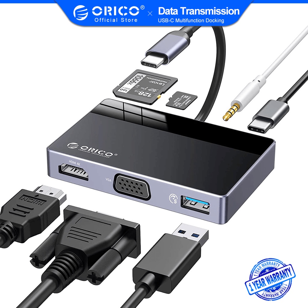 ORICO Hub USB C, Adaptador USB C multiportas 7 em 1 com 4K HDMI VGA USB 3.0 100W PD, Docking Station USB C Compatível com MacBook Pro & Air USB C Laptop e outros dispositivos Tipo C(DM-7P)