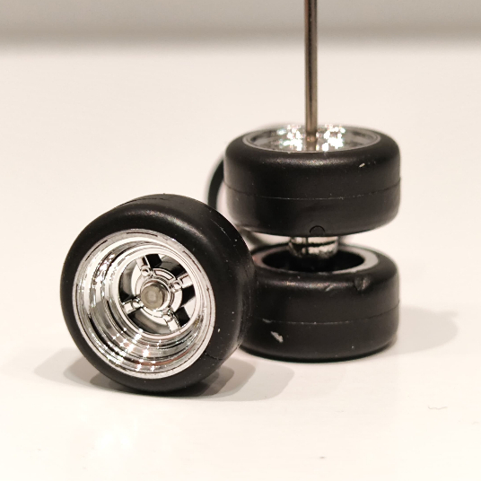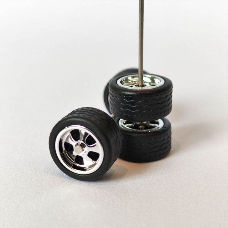 Rodas com pneus de borracha 4 pontas cromada para customização de miniaturas Hot Wheels escala 1:64