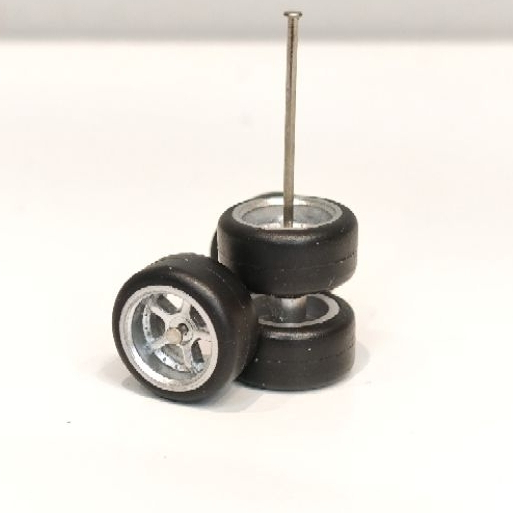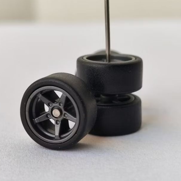 Rodas com pneus de borracha 6 pontas prata para customização de miniaturas Hot Wheels escala 1:64