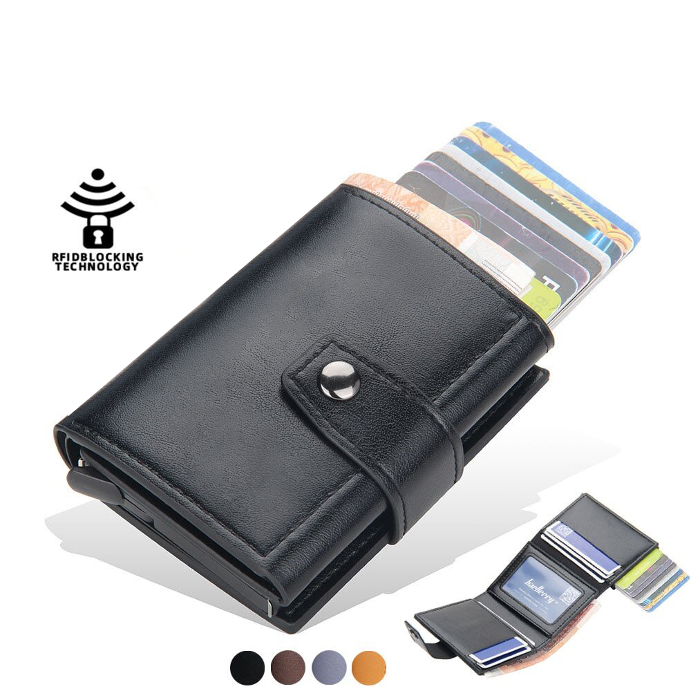 HUMERPAUL RFID Bloqueio Antitheft ID Porta-Cartões De Crédito Carteiras Finas De Alumínio De Bolso Em Couro PU Dompet Lelaki