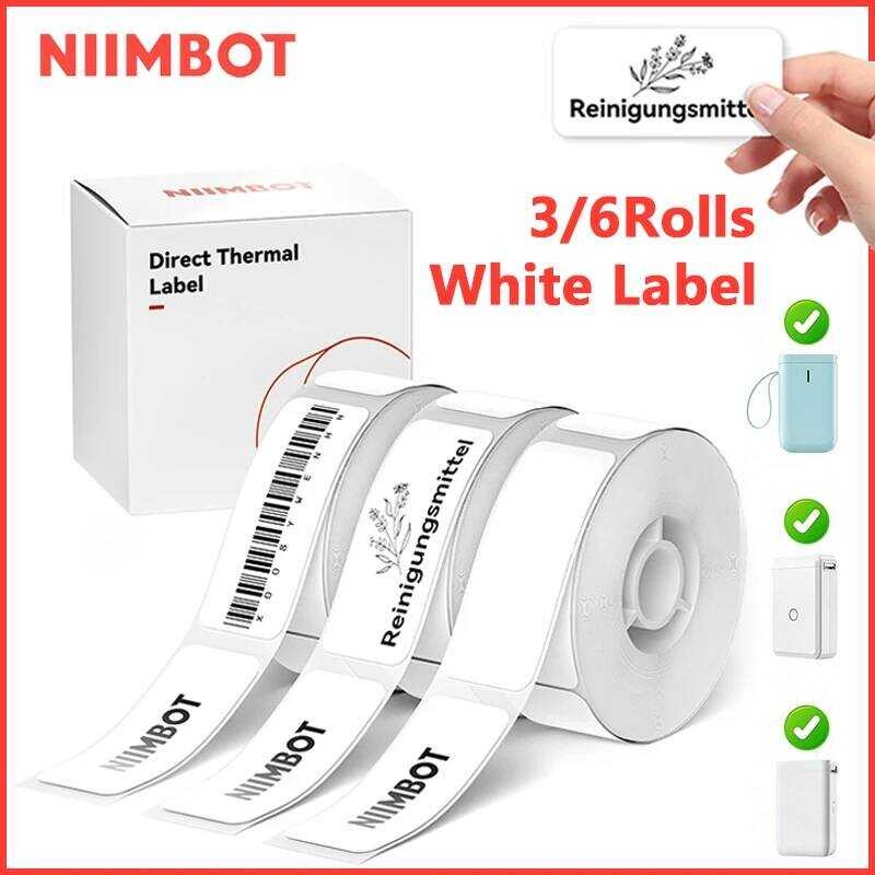 Niimbot Branco 1/3/6 Rolos Etiqueta Adesiva À Prova D'água Papel Anti-Óleo D11/D101/D110 Mini Impressora Portátil Para C