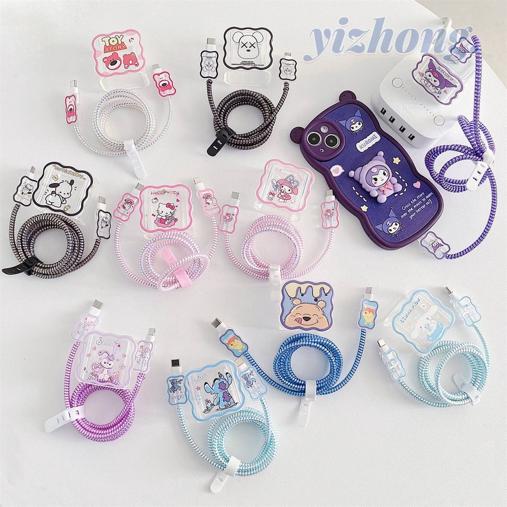 Capa Carregadora Para iPhone 18W/20W 5pçs Conjunto Protetor De Cabeça De Carregamento Borda De Onda Kaws Winnie Lotso Bear Melody Kuromi Cabo De Canela 3PCS/Macio TPU Android Tipo C