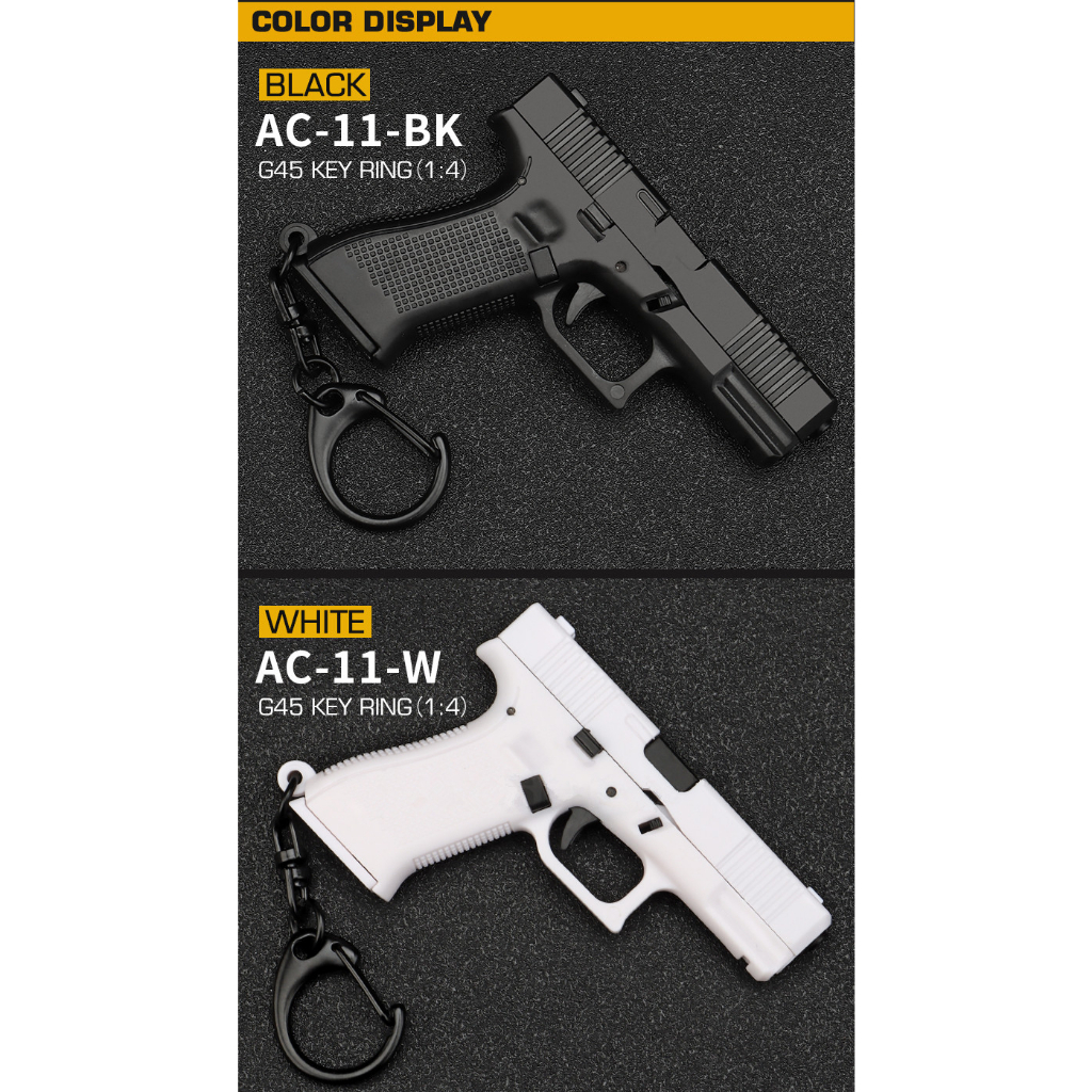 chaveiro pistola glock g45 tático militar colecionador cor preta