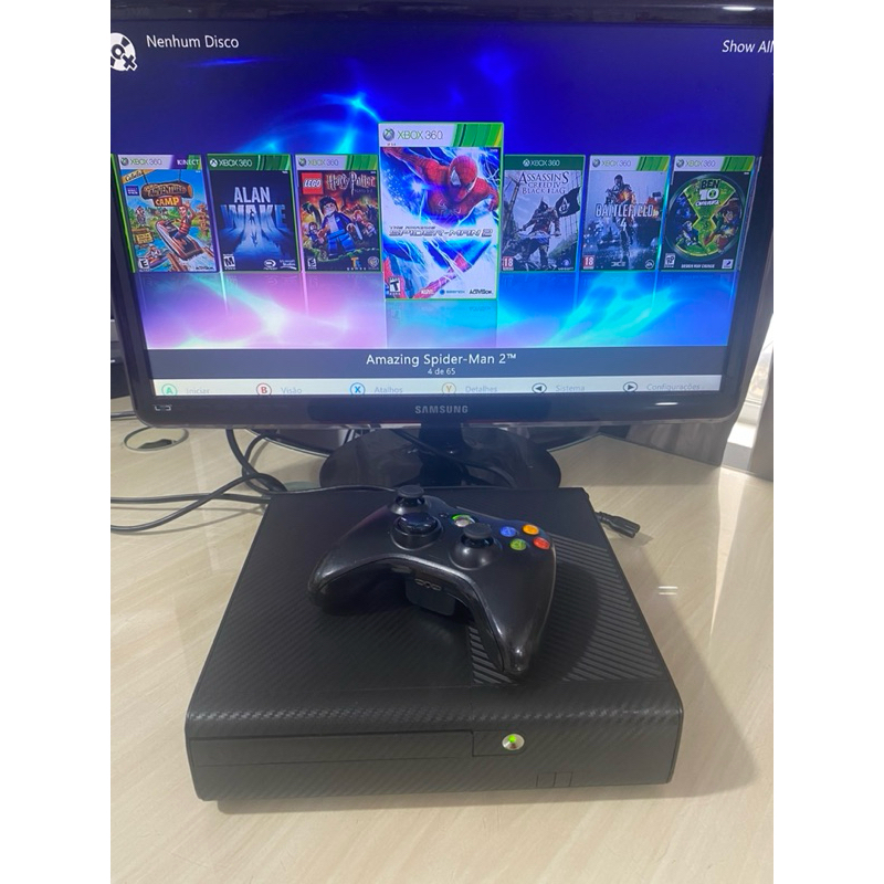 Xbox 360 Slim Elite Desbloqueado RGH + Controle Original + Fonte Original + Cabo HDMI / Cheio de Jogos