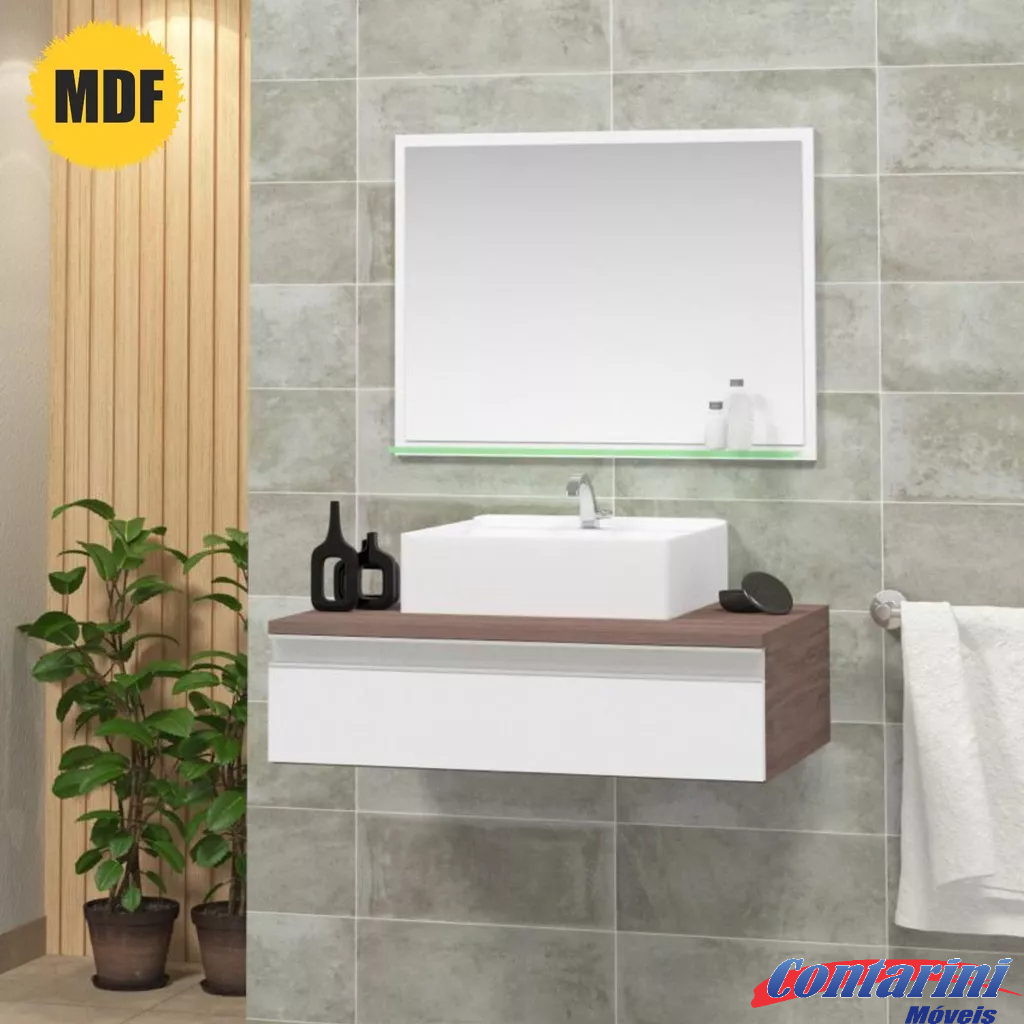 Conjunto para Banheiro Gabinete com Cuba e Espelheira 80cm Diamante Contarini