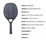 Hoowan Blackshark Raquete De Beach Tennis Carbono 3k 12k 18k Profissional Preto Sólido Superfície Áspera