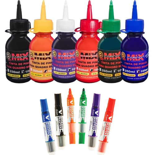 Tinta + Caneta para Quadro Branco Kit com 2 Canetas + 1 Tinta Marcador Apagável e Recarregável