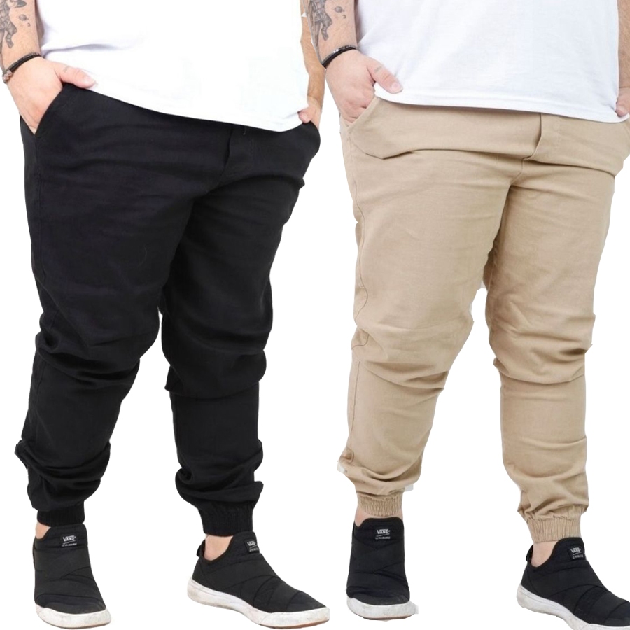 kit 02 calças jogger plus size masculina jeans e sarja variadas inverno