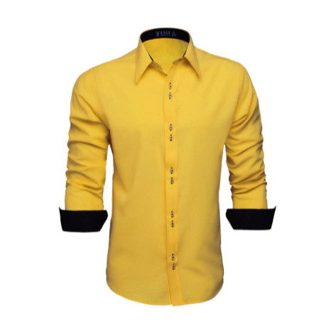 Camisa Social Masculina Manga Longa Slim Amarela Passa Facil e Não Solta Tinta