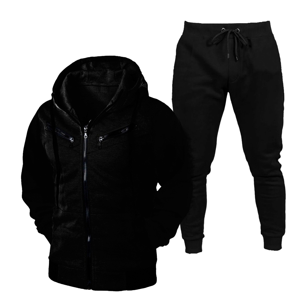 Conjunto Moletom ziper aberto kit Algodão moleton Masculino Canguru preto oferta promoção e Calca Moletom Jogging moleton jogger mooboo Preta