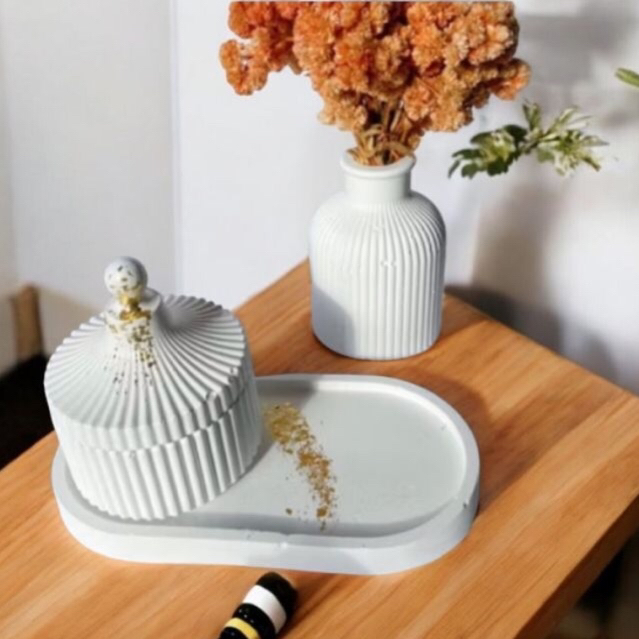 Kit decorativo Grécia Boho - Bandeja - Porta Trecos + vaso luxo Aesthetics / Moderno Cimento Branco + Gesso