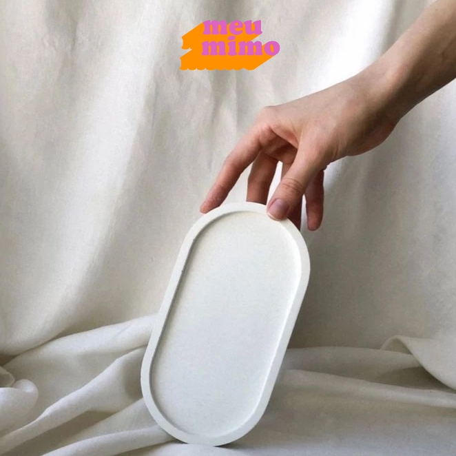 Bandeja Oval de Concreto Bandeja Marmorizada Bandeja de cimento Porta copos Suporte para copo Porta joia Bandeja cantinho do café Bandeja perfumes Bandeja para banheiro