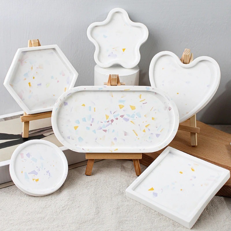 JYI Molde Quadrado Redondo De Silicone Flores De Coração Bandeja Moldes De Resina Epóxi Gesso Artesanal Cimento Placa Porta-Copos