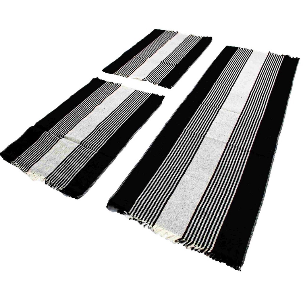 KIT 3 TAPETE DE COZINHA jogo com 1 Passadeira e 2 Tapetes Feito em tear fios de algodão