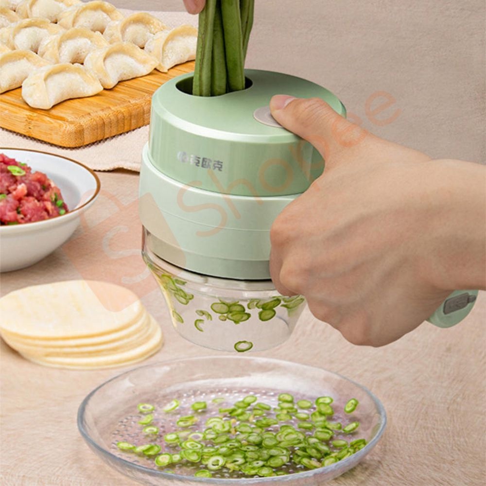 Conjunto de Fatiador Triturador de Legumes Elétrico Portátil 4 em 1 Processador de Alimentos sem fio Recarregável para Alho, Pimenta, Cebola, Aipo, Gengibre Legumes Verduras