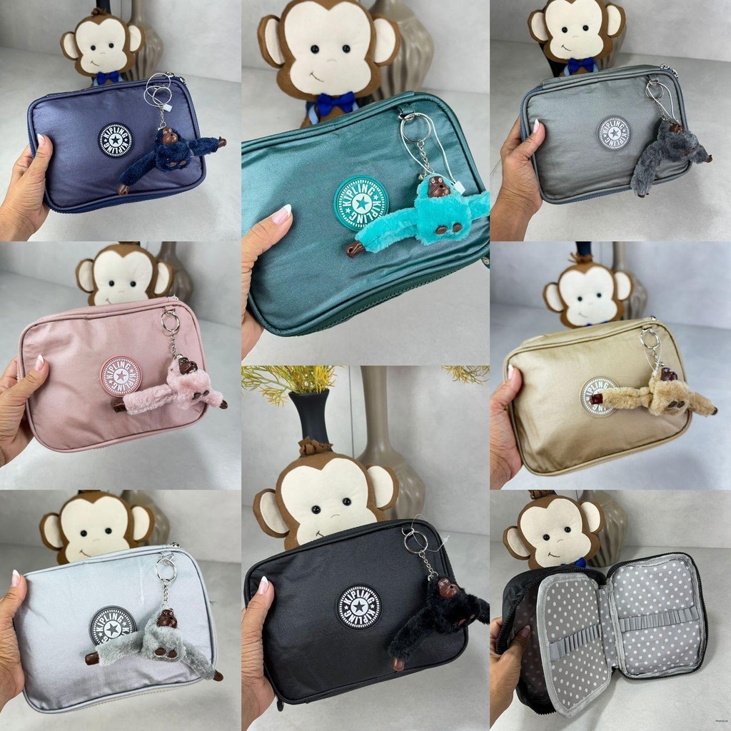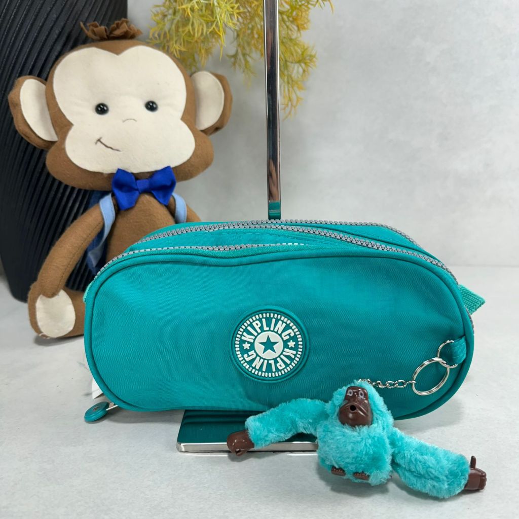 Estojo Escolar KPL Bolsinha Zíper Triplo 3 Repartições Acompanha Chaveiro Macaco Ótimo Acabamento