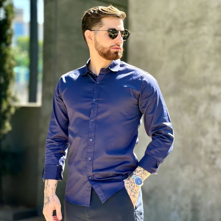 Camisa Social Masculina de luxo slim fit acetinada tecido premium algodão