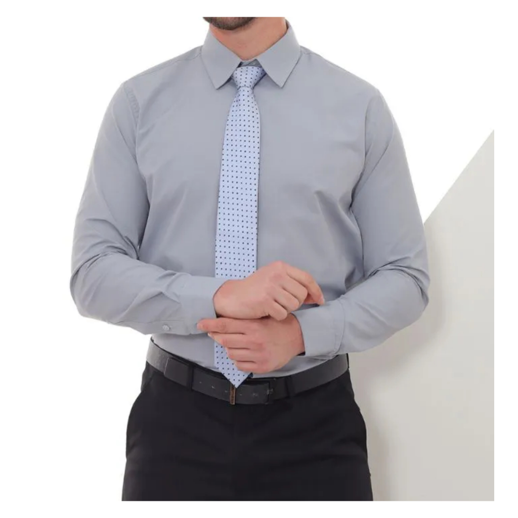 Camisa Social Masculina Cinza Claro Manga Longa Lisa Bom Estilo Luxo Slim Fit Pano Algodão De Botão Duas Cores Uniformes
