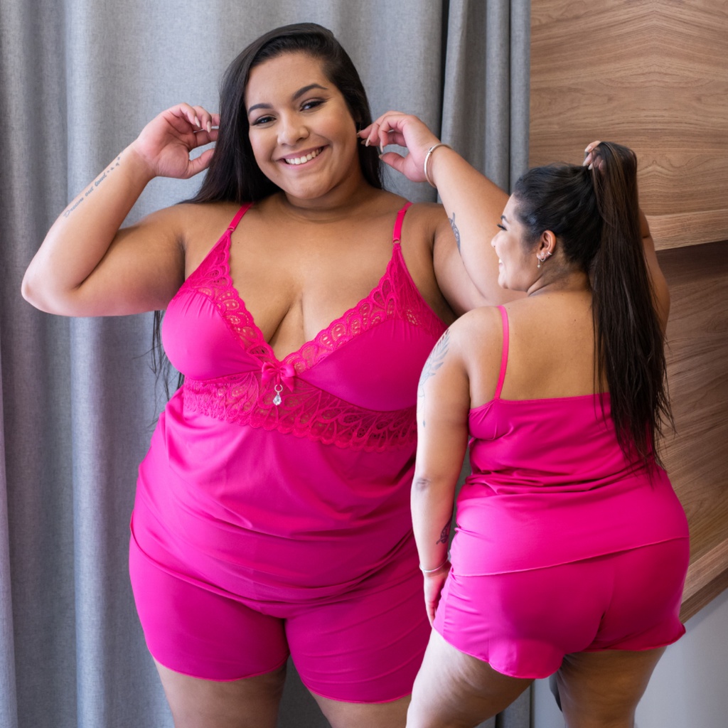 Short Doll Plus Size com Renda Confortável Tamanho Especial 50 a 56 Linha Noite Roupa de Dormir Pijama Grande - LIT Modas
