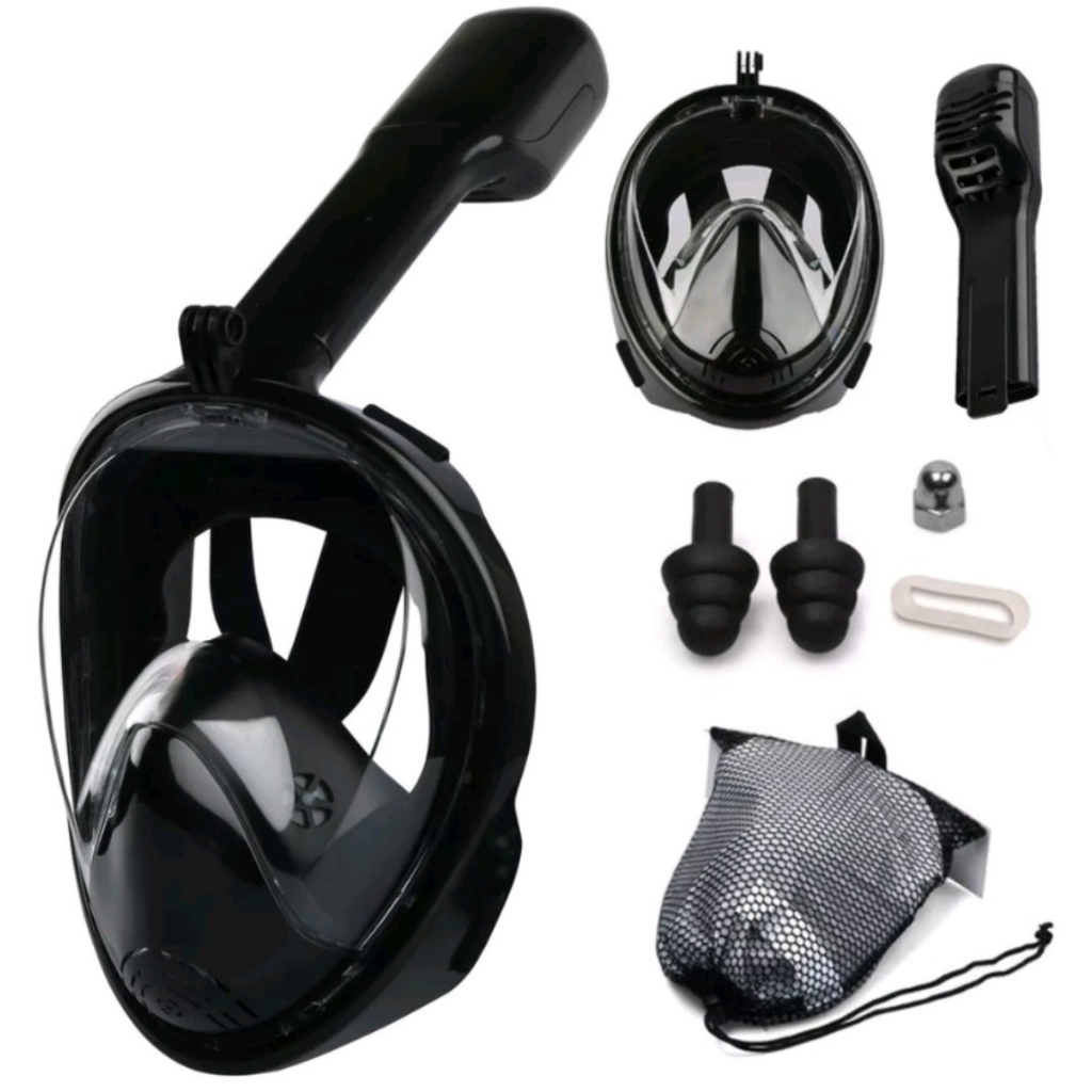 Máscara De Mergulho Snorkel Full Face Com Suporte Para Gopro Câmera De Ação Preto