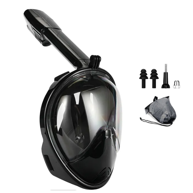 Máscara De Mergulho Snorkel Full Face Com Suporte Para Gopro Câmera De Ação Preto