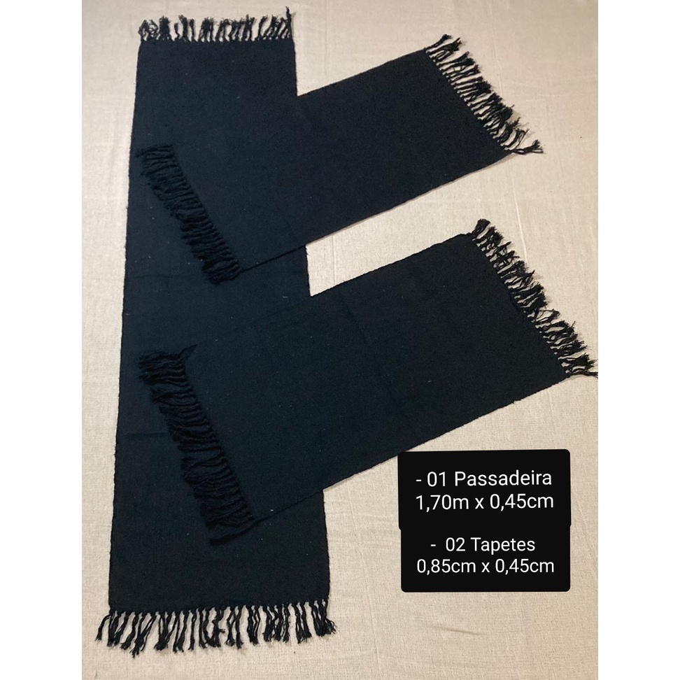KIT 3 TAPETE DE COZINHA jogo com 1 Passadeira e 2 Tapetes Feito em tear fios de algodão