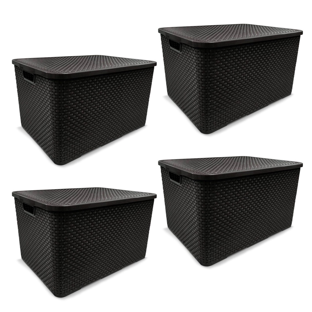 Kit 4 Caixas Organizadoras Rattan PRETA 20 Litros Arqplast