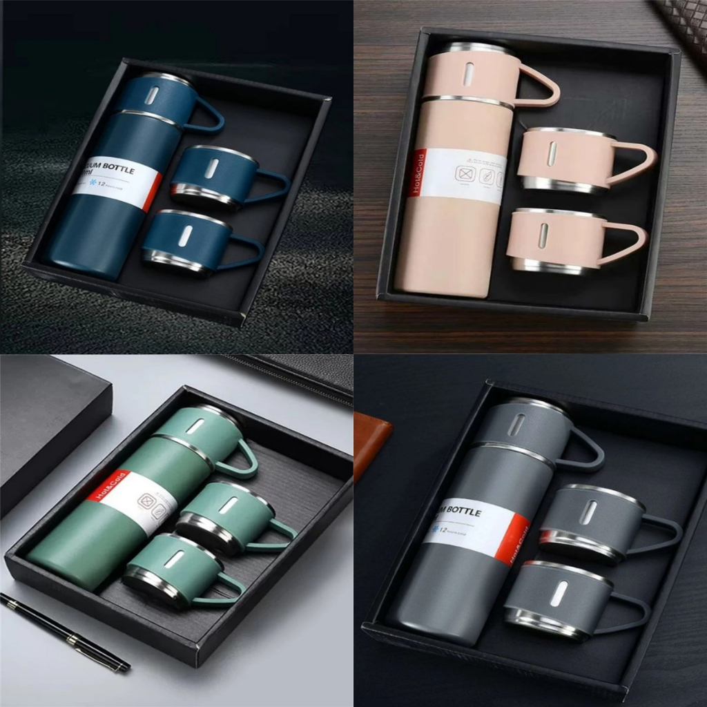 1peça Caneca térmica de negócios, conjunto de presente de aço inoxidável 304, xícara de chá de aço inoxidável, copo de água de aço inoxidável de dupla camada para carro, garrafa isolada de aço inoxidável com 3 xícaras