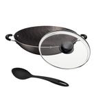 Panela Wok Tramontina Paris Antiaderente Starflon Max Tampa de Vidro 32cm 4,4 L Chumbo + Colher
