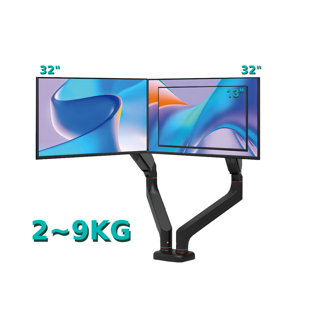 Suporte de Mesa Articulado para 2 Monitores 13 a 27 Bluecase, Até 6.5kg, Pistão a Gás, Tri-articulado, VESA - BSMTG02-1