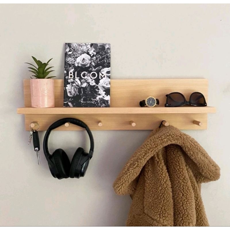Porta Chaves Organizador Decorativo Madeira Cabideiro Com Prateleira Hall De Entrada Suporte