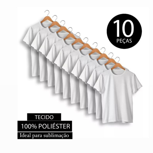 Kit 10 Camisetas Adulto 100% poliéster para sublimação ou transfer P ao GG