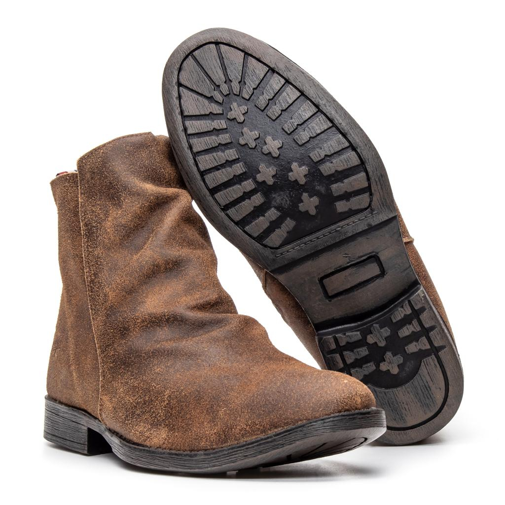Bota Chelsea Botina Masculina Casual Couro Legítimo Camurça Enrugada Palmilha Gel Confortável Preto Gold Castor