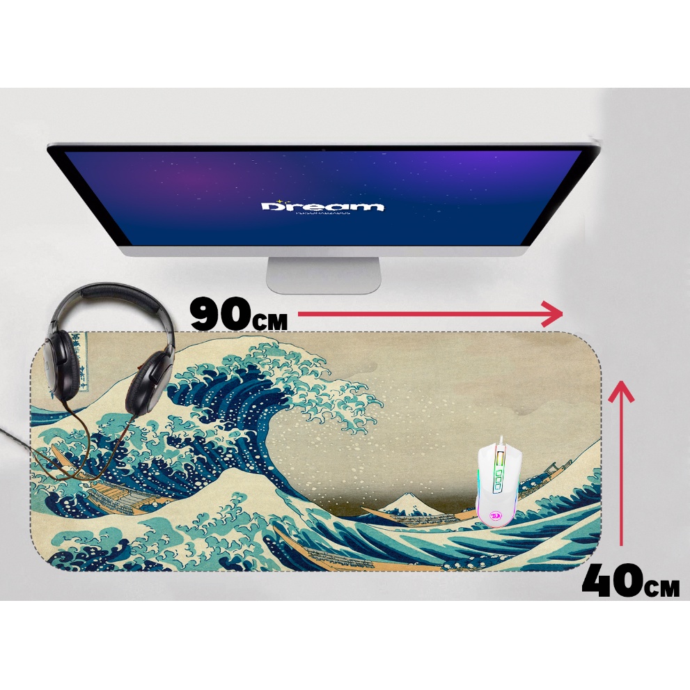 Mouse Pad The Great Waves of Kanagawa Japão Ondas onda Extra Grande 90x40 Personalizado borda costurada mousepad