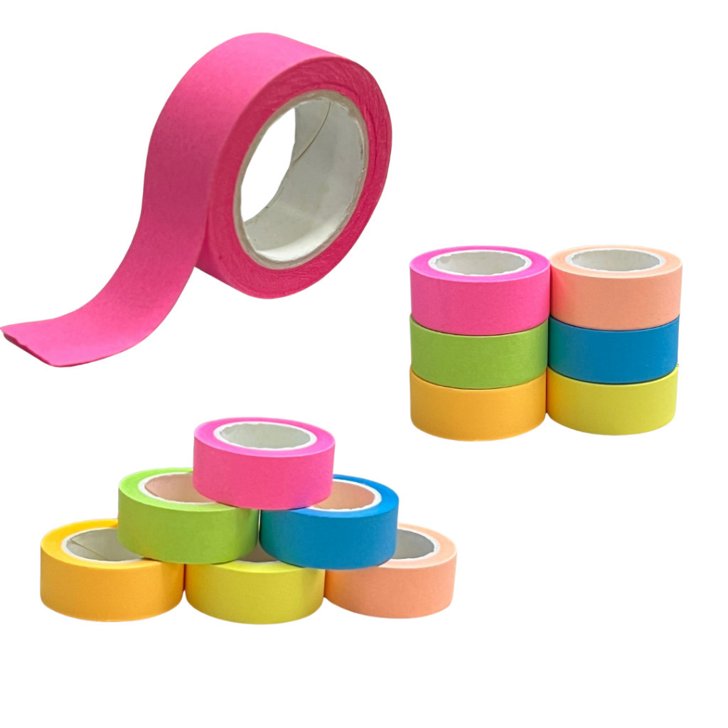 Kit 6 Fitas Adesivas de Papel Colorida Neon 15mm X 5M e 9mm X 5M Paper Tape