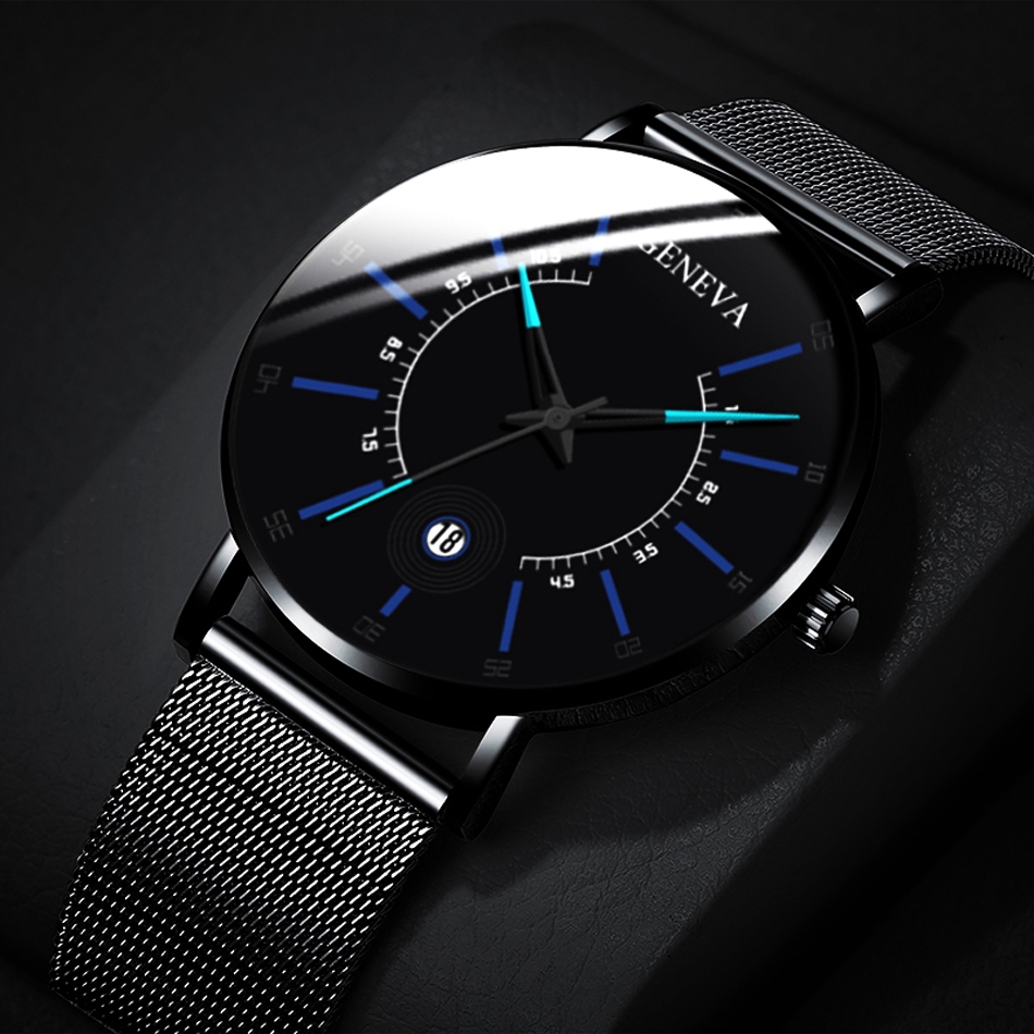 Geneva Minimalista Dos Homens De Negócios Relógios De Luxo Ultra Fino De Malha De Aço Inoxidável Relógio De Quartzo