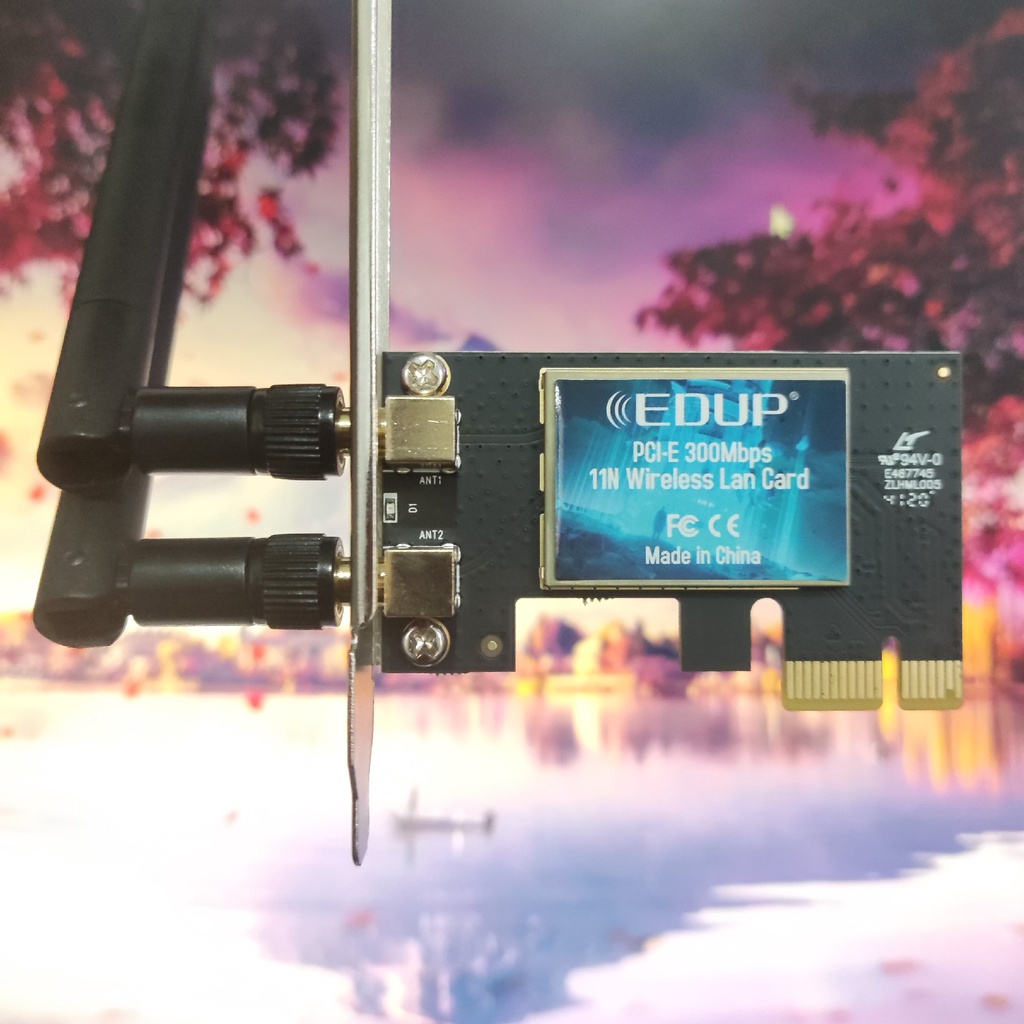 Placa de Rede Wi-Fi Edup EP-9626 PCI-E 2.4GHz C/ 2 Antenas Alto Alcance - Nova C/ Garantia