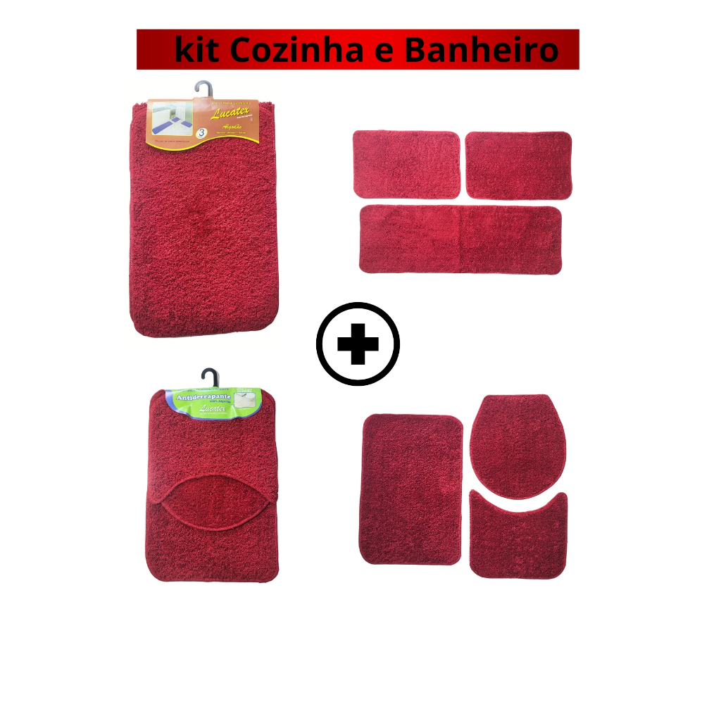 kit cozinha + jogo de banheiro Antiderrapante Algodão com 6 peças peludo felpudo