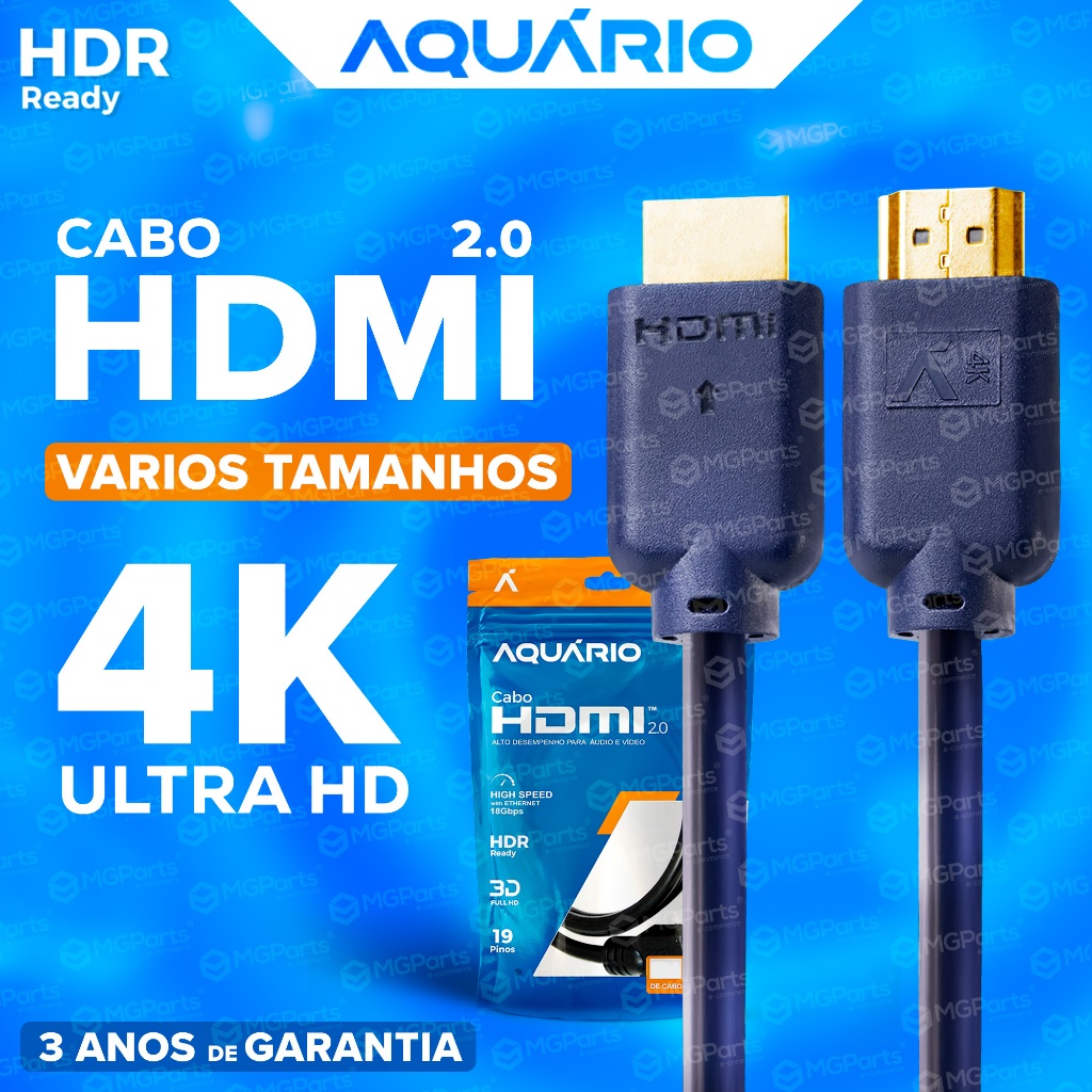 Cabo HDMI 2.0 Profissional Ultra 4K de 1 a 10 Metros Blindado Gold Garantia 3 Anos Aquário