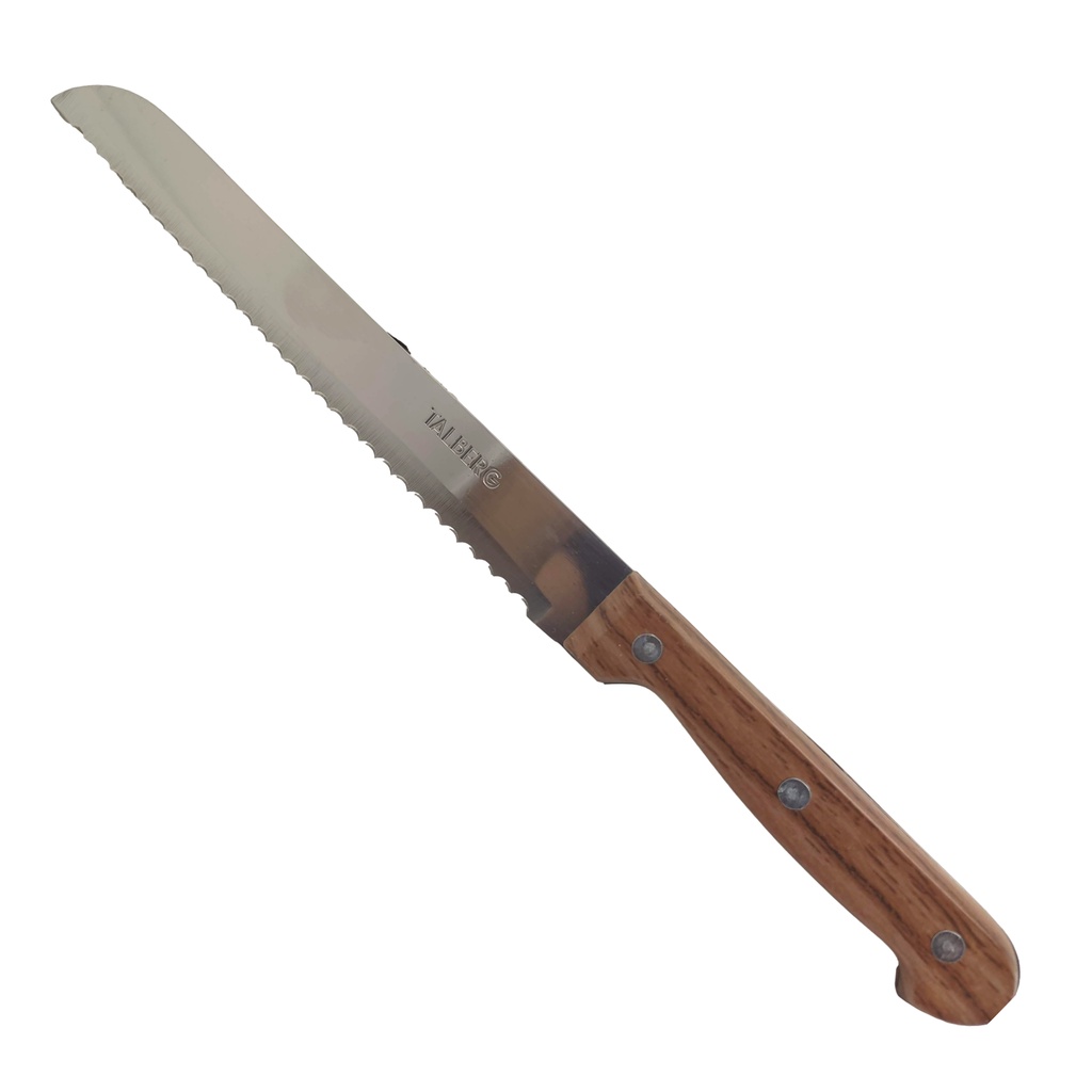 Faca de Serra Para Pão Bolo Torta Cuca Serra Serrilha Lâmina Aço Inox Cabo Plástico Madeira Cozinha 32,3cm