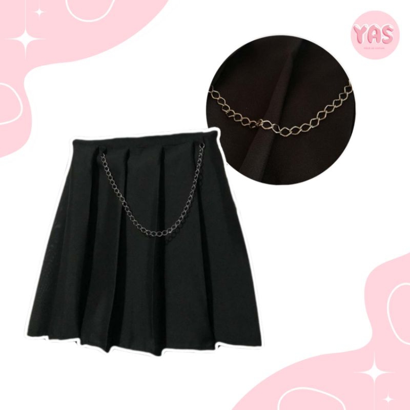 Saia Plissada Rodada Colegial com pregas + corrente kpop indie gótico anime cosplay