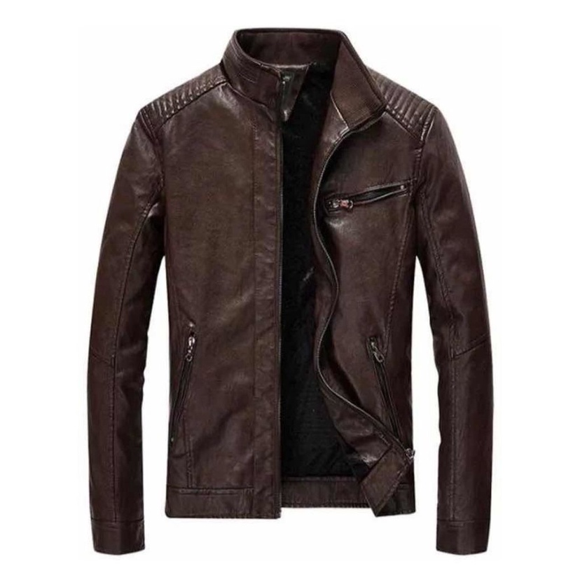 Jaqueta de couro Masculina Forrada Motoqueiro Inverno - M (marrom)