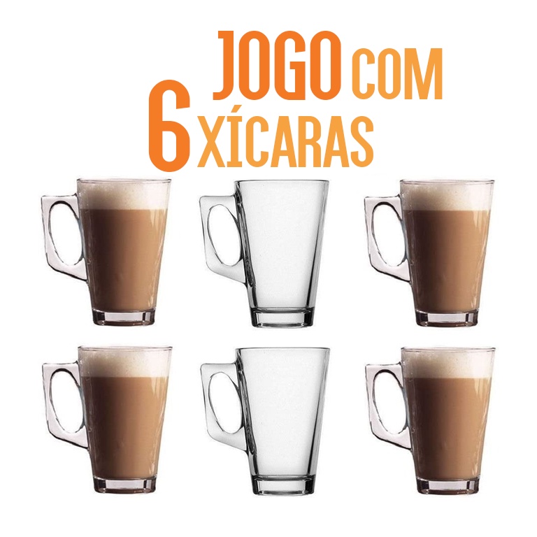 Conjunto de 6 Xícaras De Vidro Para Café Expresso Cappuccino Chá 260ml