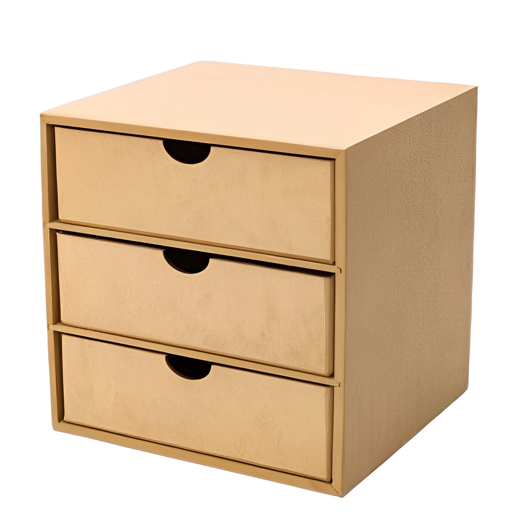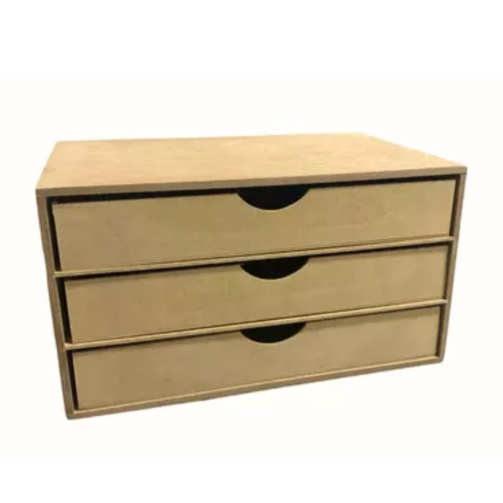 Organizador Gaveteiro para Folhas Acessórios Maquiagem MDF Cru 6 MM 3 Gavetas Para Mesa Escritório Porta Folhas A4 na vertical Suporta 500 folhas por gaveta com profundidade de 35 cm