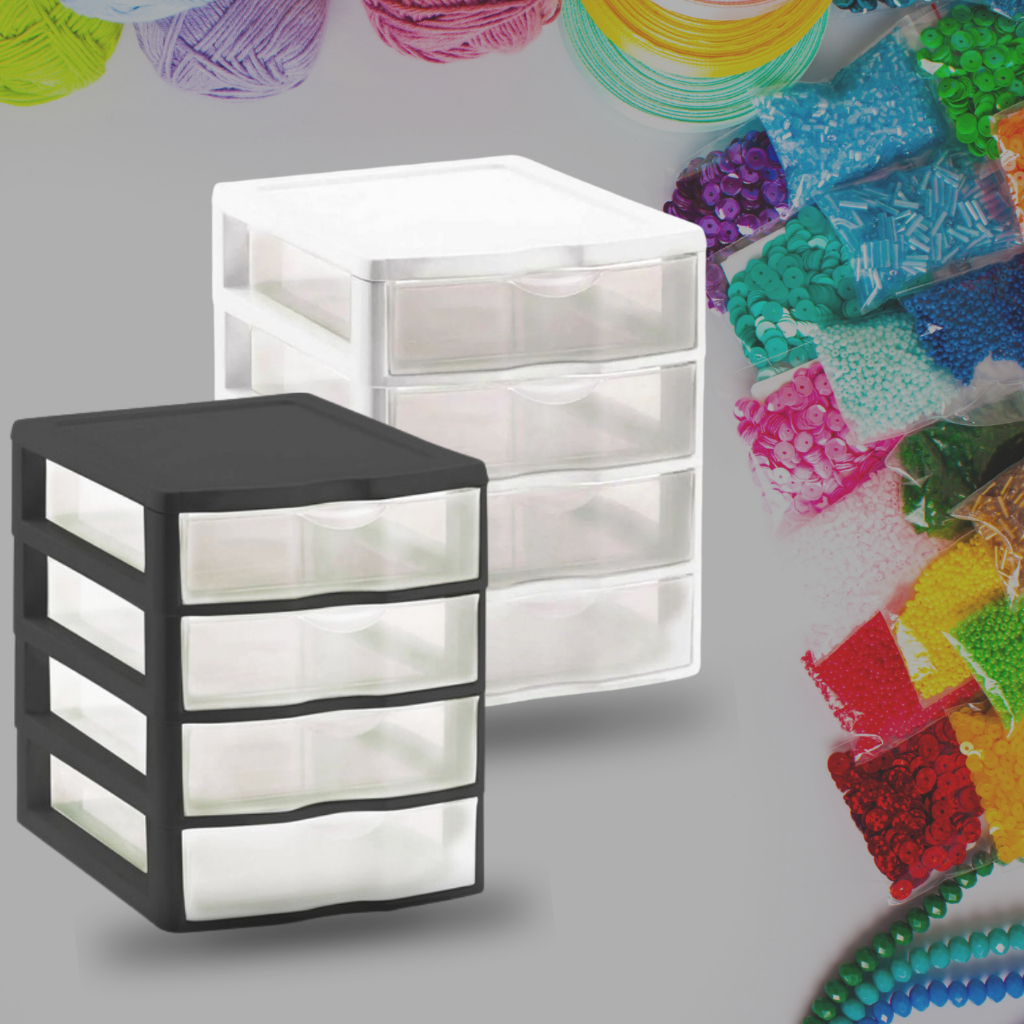 Mini Gaveteiro Pequeno Organizador multifuncional de mesa com 04 gavetinhas organizadora porta treco Branco Preto