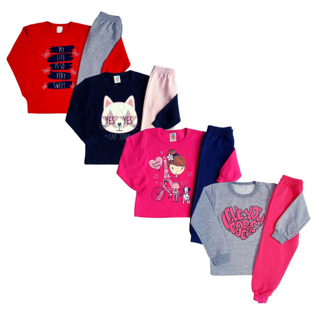Kit 4 Peças Conjunto Moletom Infantil Menina 1 ao 16 Feminino Outono Inverno