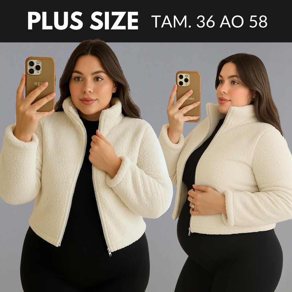 Casaco Feminino Inverno Plus Size Blusa De Frio Feminina Casaco Teddy Feminino Gola Alta Com Ziper