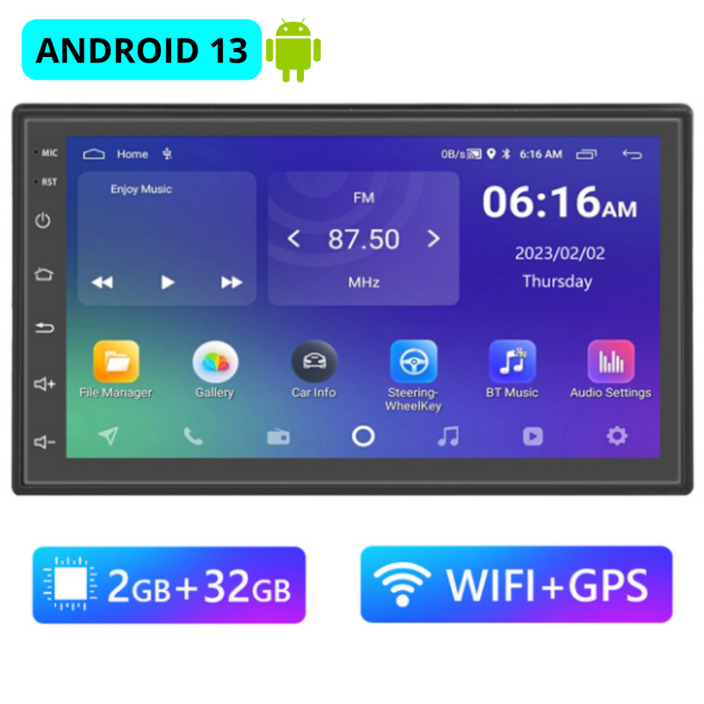 Central Multimidia Android 7 Pol 2 Din Espelhamento Wifi GPS