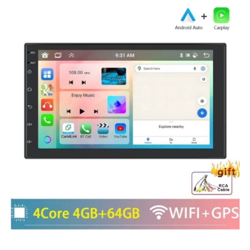 Central Multimidia Android 14 7 Pol 2 Din Espelhamento Wifi Bluetooth GPS carplay Auto 2+64 FULLHD