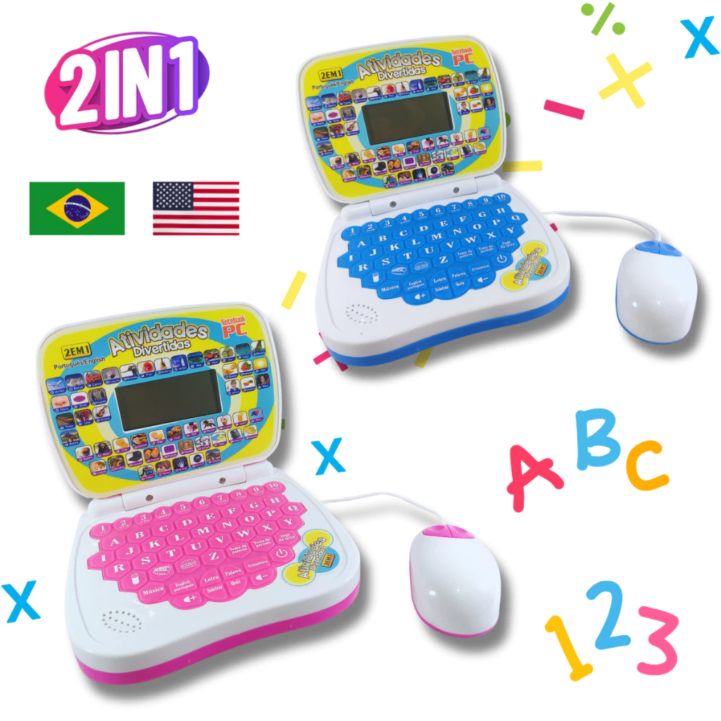 Computador Notebook Laptop Infantil Educativo C/Mouse 2 em 1 Inglês/Português Menino Menina Criança